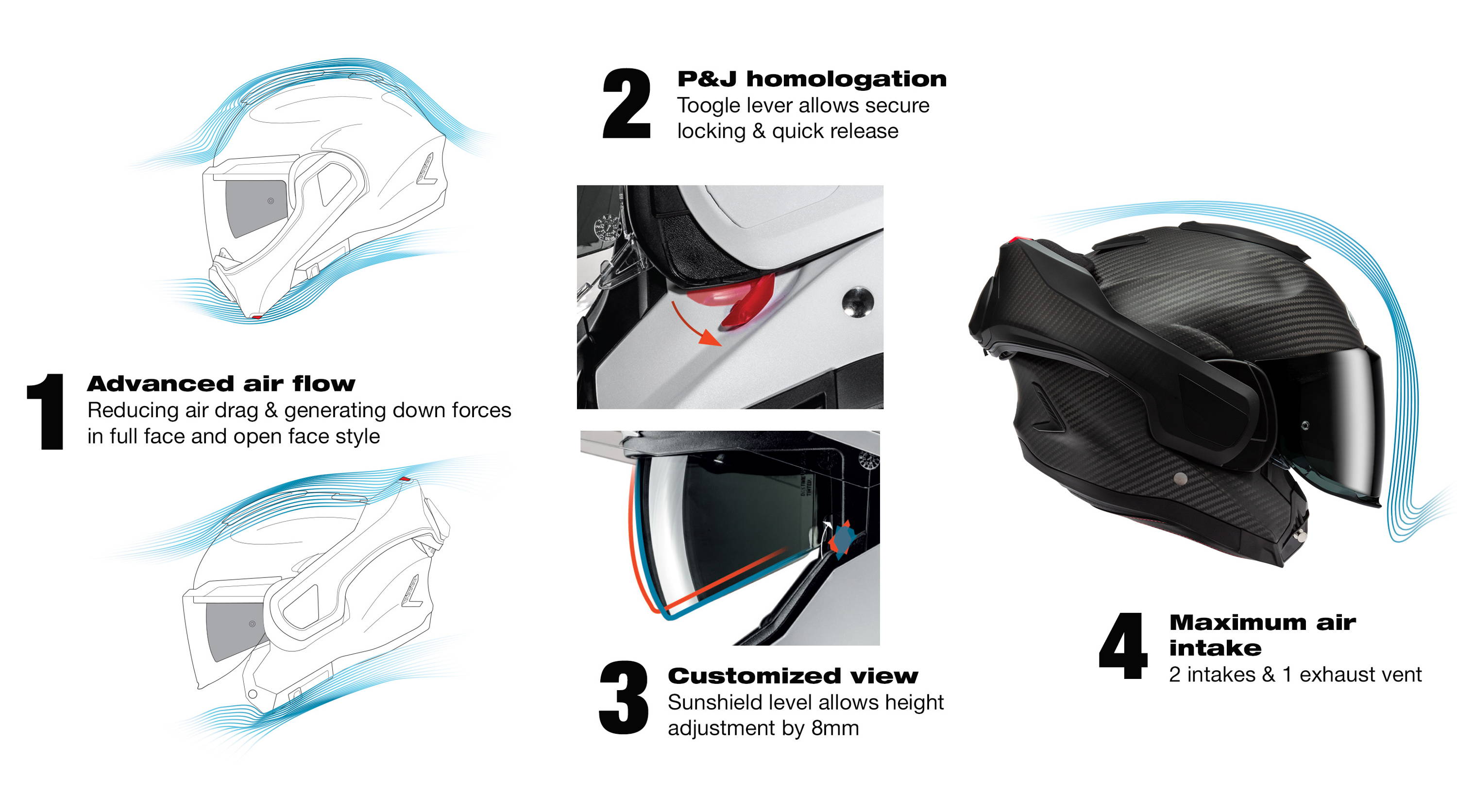 Already recognized for its innovation, the F100 Carbon represents a significant evolution in modular helmet design. Built with a carbon fiber outer shell, it delivers a lightweight construction combined with enhanced shock resistance and high-speed aerodynamic performance.