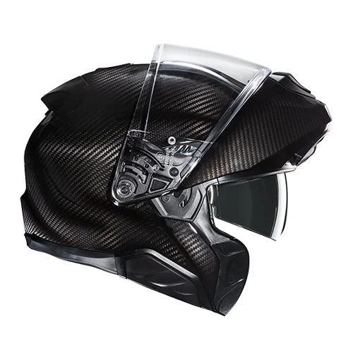 The chin curtain retracts when the helmet is in the open position to make it easier to put on and reduce wind resistance.